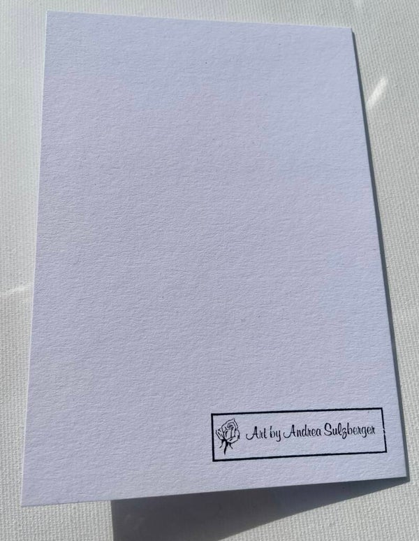Auf der Rückseite trägt jede Karte meinen Stempel „Art by Andrea Sulzberger“, ein sichtbares Zeichen für Echtheit, Qualität und liebevolle Handarbeit.